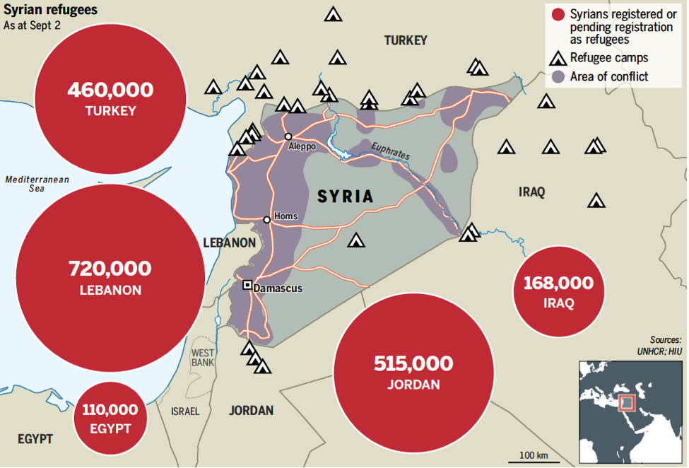 Over 100,00o dead, one third of the population of 22 million displaced, over 2 million formally refugees…